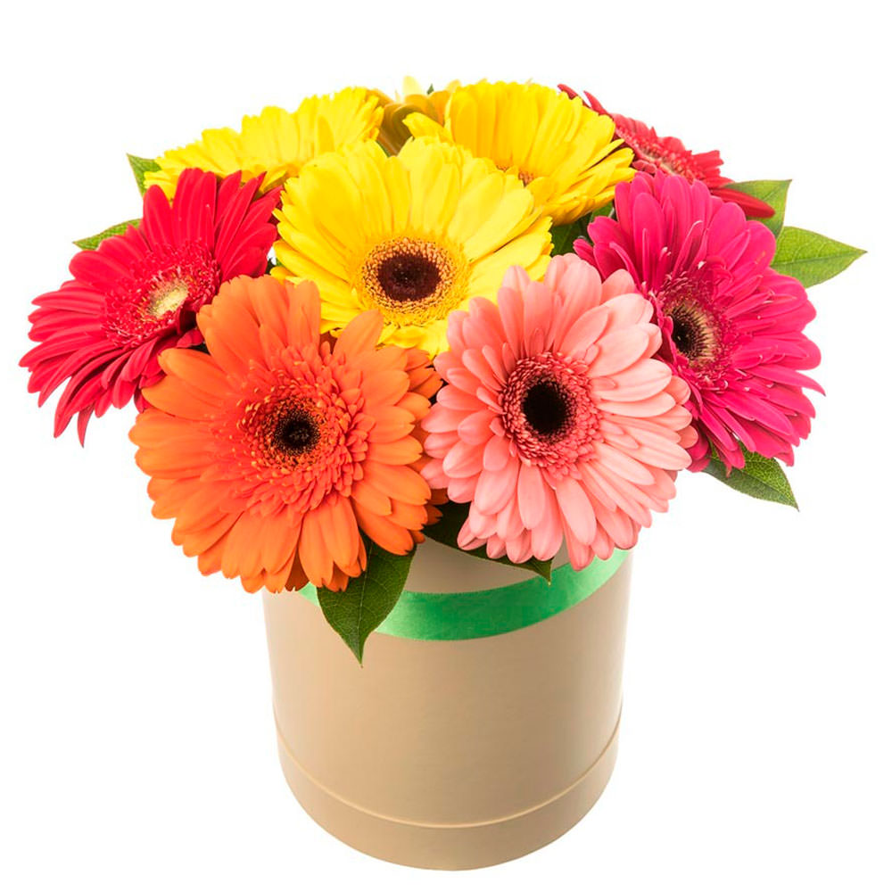 Коробка с цветами «Микс гербер» с доставкой по г Арарат: вы можете купить букет в интернет-салоне цветов «Цветоландия» по цене от 13000 драм.